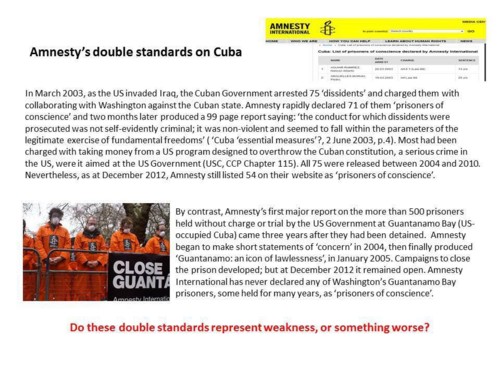 E se o fazem (contradizendo a palavra do seu director em Portugal), por que raio não admitem a existenência das campanhas acima mostradas e publicadas nos seus próprios sites? E se as fizeram sobre políticos do "lado do mal" segundo a retórica imperial norte-americana, por que raio insistem em negar o óbvio: que são uma organização de propaganda bélica do império da guerra norte-americano? E se insistem que não o são, por que raio não fazem politizadas campanhas no sentido contrário, criticando os EUA por matar todos os meses centenas de civis sírios em ilegais e criminosos ataques aéreos? Ou por vender armamento ao terrorista estado saudita? Ou por ocupar militarmente um sem número de países? Ou por executar golpes de estado na Ucrânia ou nas Honduras, ou tentativas de golpe de estado na Venezuela ou Bolívia? Etc e tal? Como é caros súbditos amestrados da AI, parece que a realidade factual não vos perdoa!?!