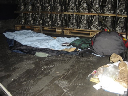 À 1 hora da manhã chegávamos finalmente a Irún, o camionista estava cansadíssimo pela longa jornada de condução, nós não menos, desabituados a tão longos períodos de tempo enjaulados num veículo e com a cabeça em água de tantas estórias ainda por assimilar. Ele ajeitou a sua cama por detrás dos assentos da cabine, enquanto que nós encontrámos uma relva razoavelmente confortável nos jardins do parque de estacionamento e aí instalámos os sacos de cama. Mau mesmo foi quando a meio da noite começou a cair uma borriça que nos obrigou a procurar refúgio por debaixo de uns arbustos muito pobres em folhagem. Uma noite muito mal passada, sem dúvida!