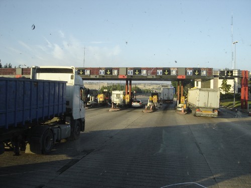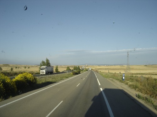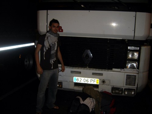 PSICÓLOGO DE CAMIONISTAS (Portugal, Espanha, França, 2007) – A primeira boleia que eu e o meu colega Diogo obtivemos na aventura Sudeleste 2007 foi-no oferecida por um camionista português que em Vilar Formoso nos garantiu poder transportar-nos até Irún, junto à fronteira franco-espanhola, mas não mais longe que isso. Perfeito, de uma assentada só atravessaríamos a totalidade da extensa Espanha! Se bem que rolando num camião cujo limite de velocidade é de 90 km/h e com cerca de 600 km para atravessar a viagem prometia ser imensamente longa e monótona. Bom, pelo menos jogávamos pelo seguro e garantíamos que no dia seguinte estaríamos já a caminho de França. Se é certo que de carro se viaja bem mais rápido, a incerteza de encontrar um que pare para dar boleia em Espanha e Portugal, juntamente com as esperas possivelmente de horas entre boleias de carros que por norma são de distâncias bem mais curtas que as dos camiões de transporte internacional, levou-nos a aceitar a generosa oferta do nosso compatriota e partir em direcção ao desconhecido.