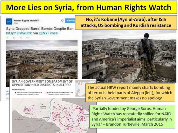 E depois, a sério, como pode ser neutral ou imparcial uma ONG que: primeiro, apenas se encontra em territórios ocupados por forças "rebeldes" compostas em grande parte por estrangeiros mercenários; segundo, encontra-se em situação ilegal na Síria; terceira, apela à ONU pela criação na Síria de uma no-flight zone como aquela cujas consequências foram transformar a Líbia, esse moderno e desenvolvido país, numa paisagem lunar!